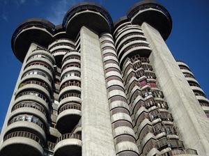 L’architetto Francisco Javier Sáenz de Oiza, su commissione del costruttore Juan Huarte, aveva previsto la costruzione di due torri con cemento armato a vista.